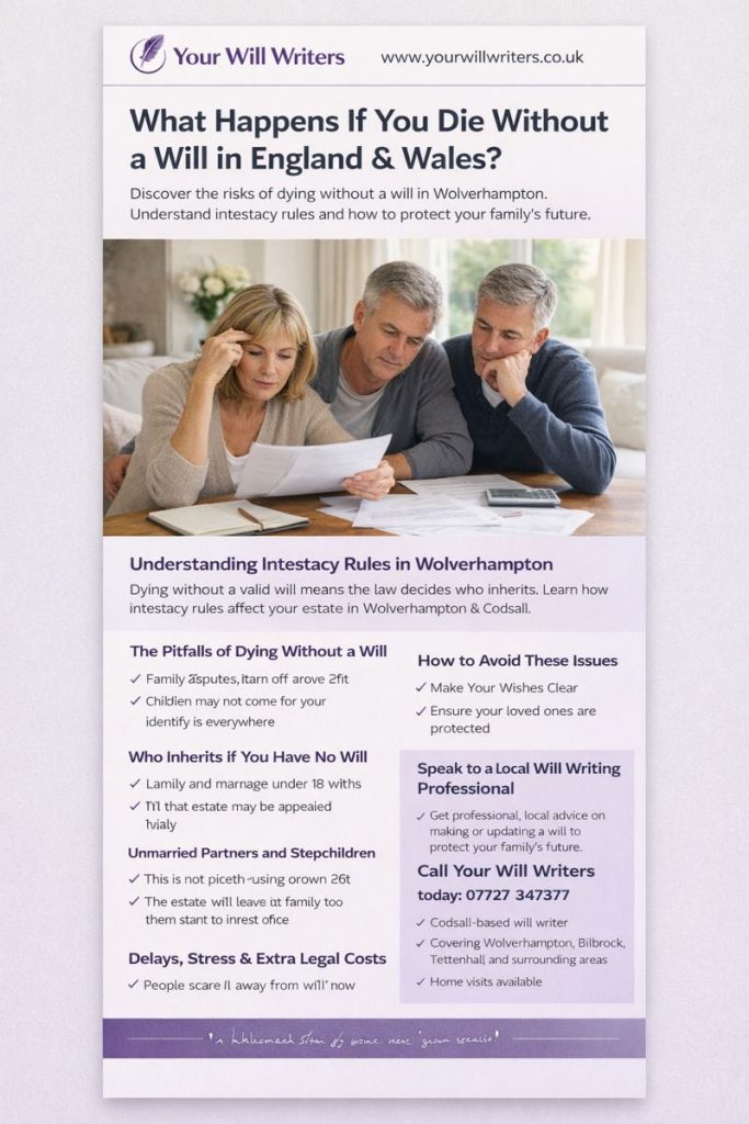 It’s something many people put off — but the reality is that dying without a will can create confusion, stress, and financial difficulties for the people you care about most. Every week, families across South Staffordshire and Wolverhampton find themselves facing complicated legal processes because a loved one passed away without leaving clear instructions. If […]