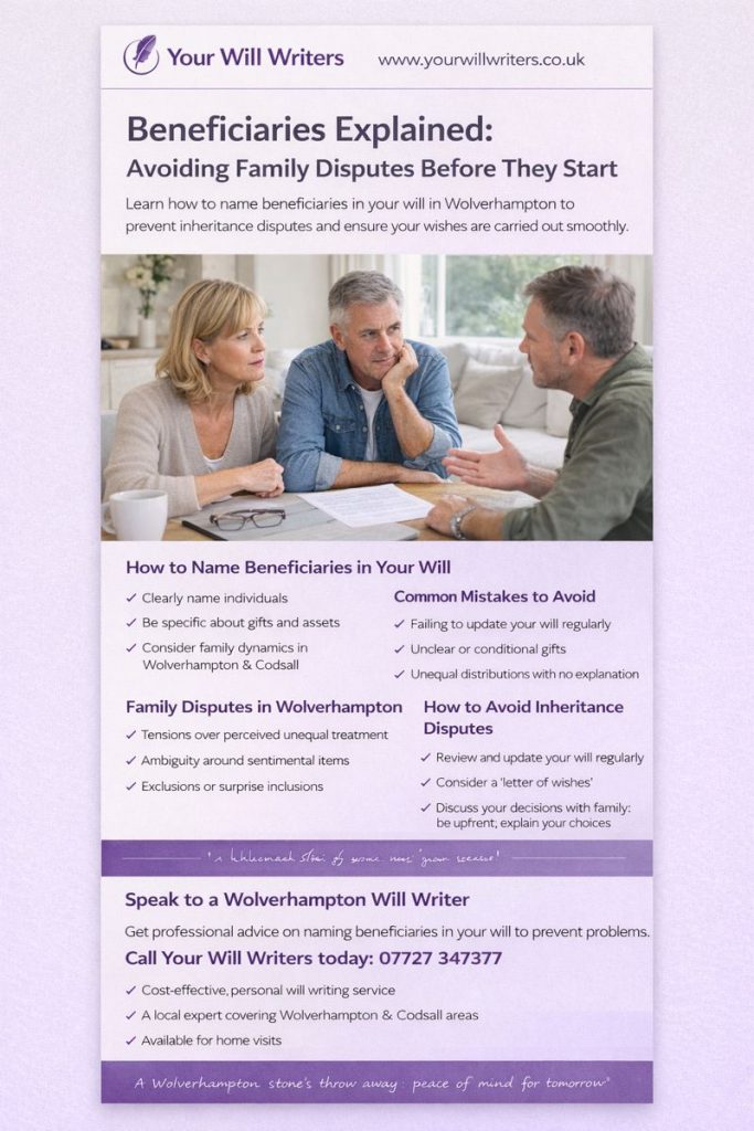 Beneficiaries Explained: How to Avoid Family Disputes in Wolverhampton When people in Wolverhampton, Codsall and the surrounding areas make a will, they often focus on what they want to leave behind. But one of the most common causes of family conflict after a death is confusion or disagreement about beneficiaries. A beneficiary is simply someone […]
